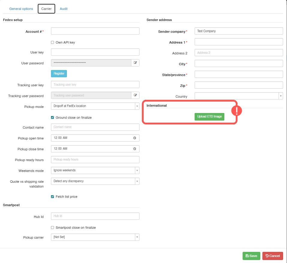 When shipping international orders via FedEx and you choose to use Electronic Trade Documents (ETD) instead of physically printing customs and trade documents, you need to upload the ETD images required by FedEx and then assign them to the Billing Account you will use for shipping.
