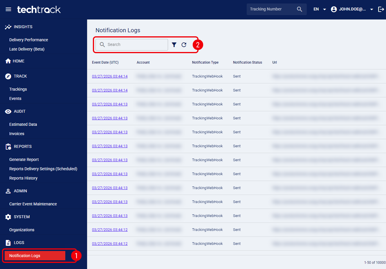This guide covers how to access and filter the Notification Logs in techTRACK .