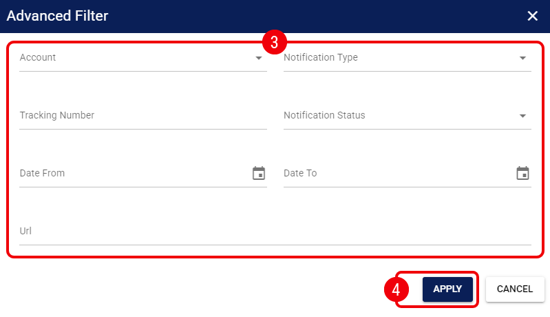 - Notification Status : Select a status from the drop-down to filter by the transmission result.
