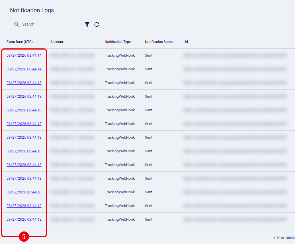 - Tracking Number : Enter a specific tracking identifier to locate related webhook events.