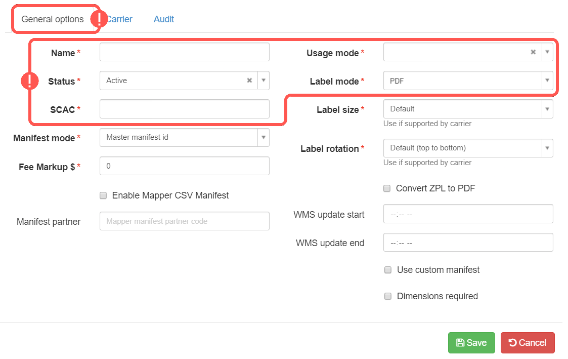 - SCAC -> Carrier/SCAC code you're using in the WMS