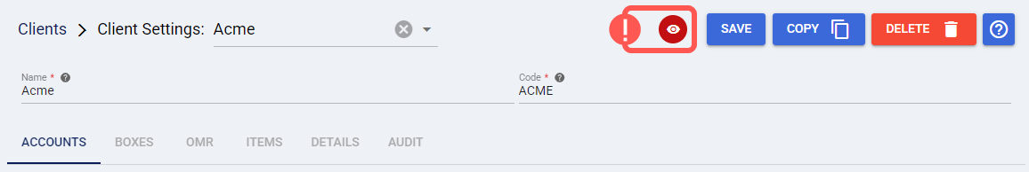 This is useful when navigating deeply nested settings, allowing you to move between levels or switch entries efficiently. For example: If you are editing a Billing Account and you need to go back to its Client page, click on its name to return to that section.