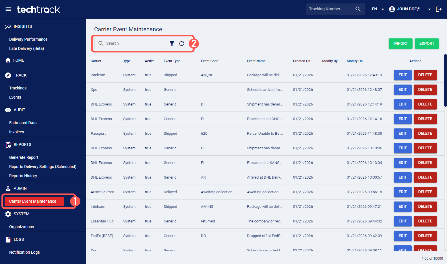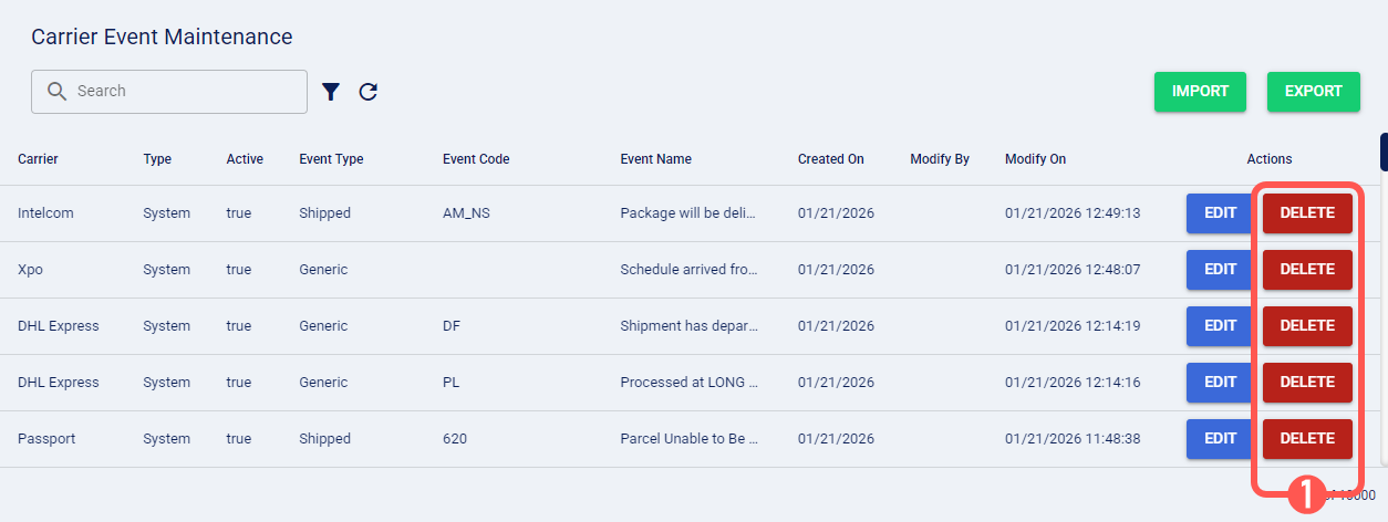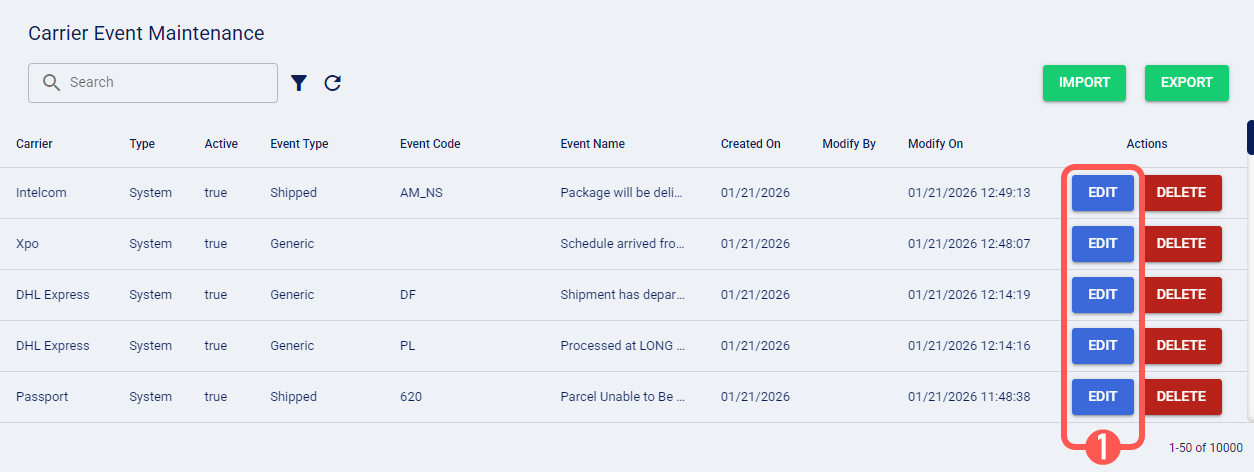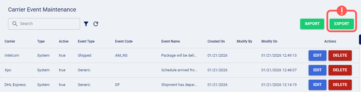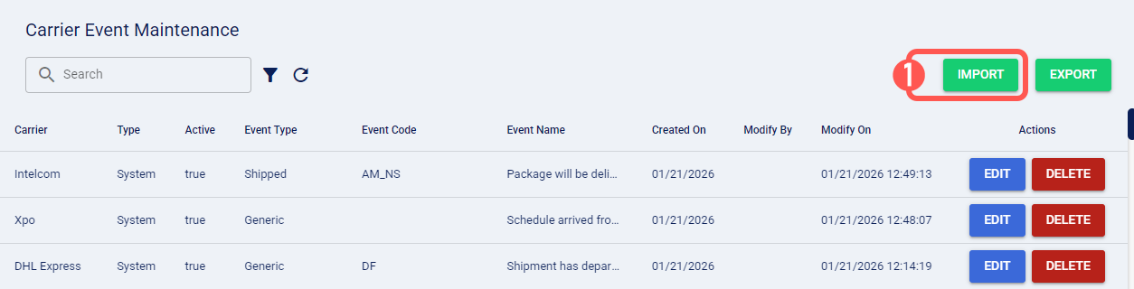 1. Click Carrier Event Maintenance from the left menu under the Admin section.