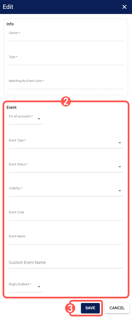 - Event Name (Read-only, unless RegEx Enabled is active): The original name of the event provided by the carrier.