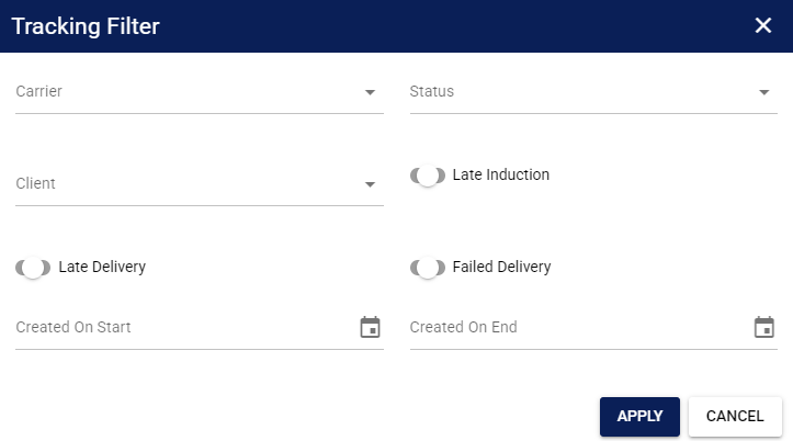 To locate specific records, you can enter a Tracking Number or Master Tracking Number in the search bar for a quick search. For more complex queries, click the filter icon to open the Advanced Filter window.