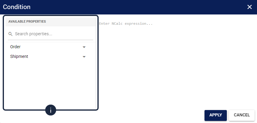 ![]() | When configuring dynamic calculations, fields such as Condition, Price, and Cost use NCalc to evaluate expressions. Click the Edit icon to access the Expression Builder.![]() This builder provides a searchable dictionary of available properties and real-time syntax validation. ![]() Follow these syntax rules: